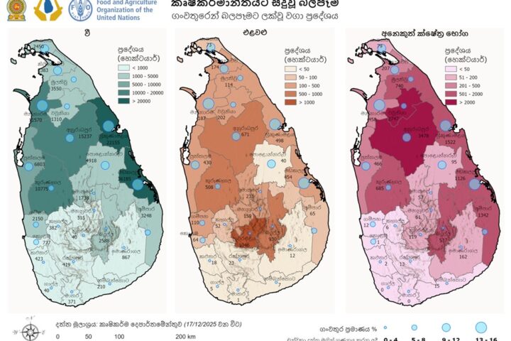දිට්වා සුළි කුණාටුවෙන් කෘෂි බෝග වලට සිදු වූ හානිය FAO සිතියම්ගත කරයි